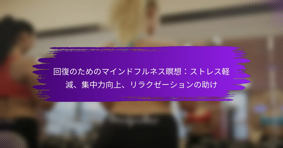 回復のための効果的なマインドフルネス瞑想技術は、ストレスを軽減し、集中力を向上させ、リラクゼーションを促進する実践を通じて精神的な幸福感を高めることに焦点を当てています。これらの技術は日常生活に簡単に統合でき、不安を管理し、集中力を高め、落ち着きの感覚を育むことを求める個人にとって有益です。